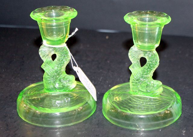 267 Pair of Green Depression Sea Serpent Candlesticks