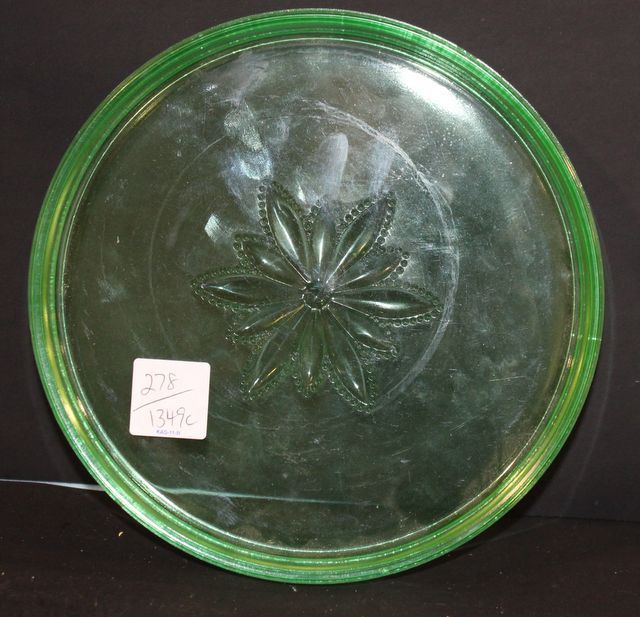 278 Green Depression Tray wit Flower Design