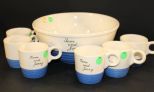 Bowl and six cups; bowl 10 1/2" dia. Bowl and six cups; bowl 10 1/2" dia.