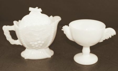 Rooster cup and Westmorland covered cherry pattern creamer; creamer 5" h. Rooster cup and Westmorland covered cherry pattern creamer; creamer 5" h.