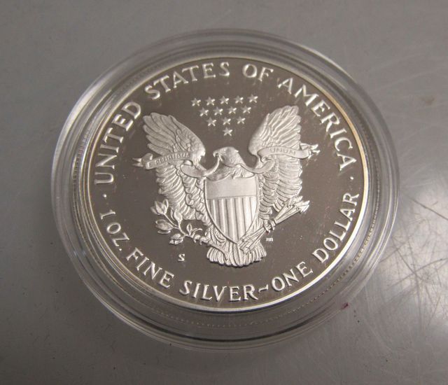 Proof, San Francisco mint, S mark, 99.99 %, 1 troy ounce, bullion coin, in case. Proof, San Francisco mint, S mark, 99.99 %, 1 troy ounce, bullion coin, in case.
