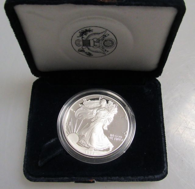 Proof, Philadelphia mint, P mark, 99.9 %, 1 troy ounce, bullion coin, in case. Proof, Philadelphia mint, P mark, 99.9 %, 1 troy ounce, bullion coin, in case.