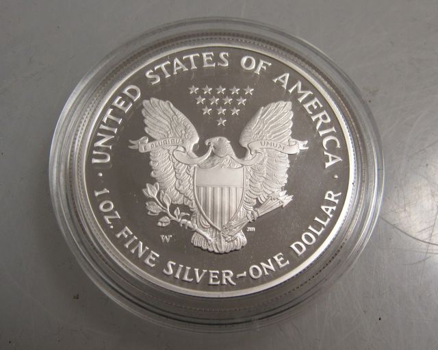 Proof, West Point mint, W mark, 99.9 %, 1 troy ounce, bullion coin, in case. Proof, West Point mint, W mark, 99.9 %, 1 troy ounce, bullion coin, in case.