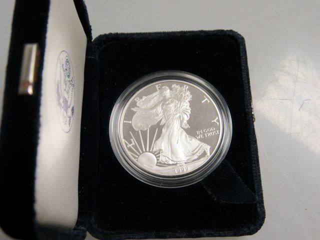 Proof, Philadelphia mint, P mark, 99.9 %, 1 troy ounce, bullion coin, in case. Proof, Philadelphia mint, P mark, 99.9 %, 1 troy ounce, bullion coin, in case.