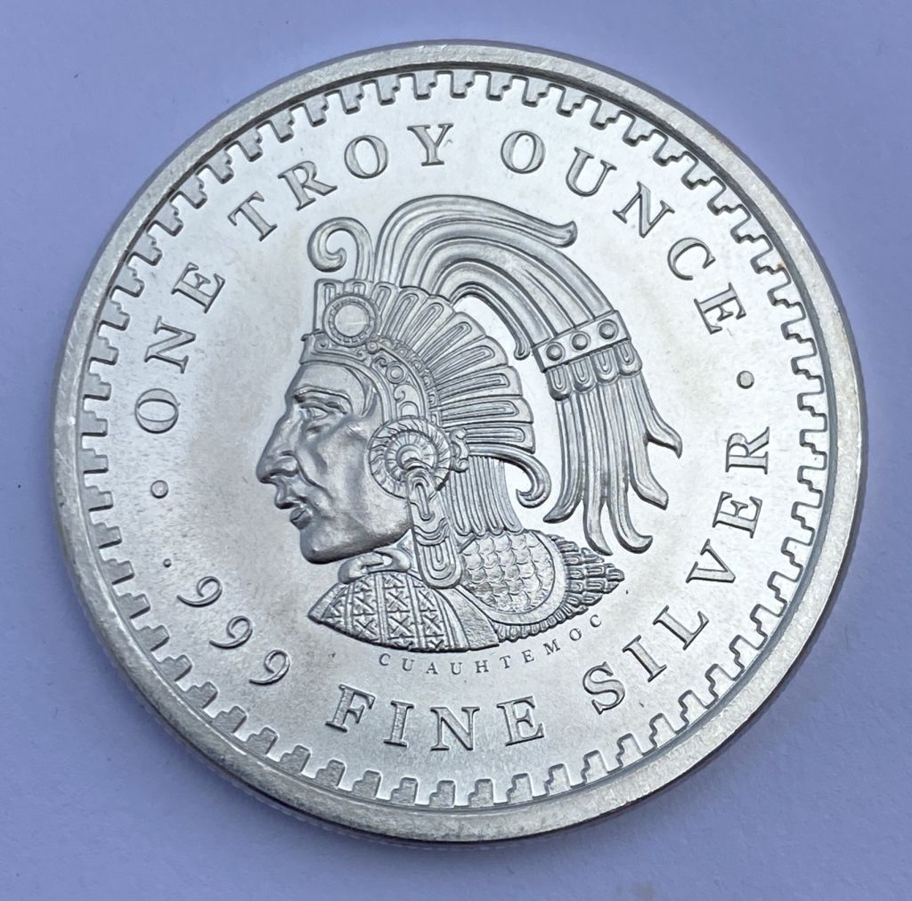 Aztec Calendar Stone Eagle Warrior 1 oz Silver, Emperor of Tenochtitlan. .999 Fine Silver. Aztec Calendar Stone Eagle Warrior 1 oz Silver, Emperor of Tenochtitlan. .999 Fine Silver.