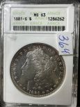 1881-S Graded Morgan Silver Dollar MS63 1881-S Graded Morgan Silver Dollar MS63