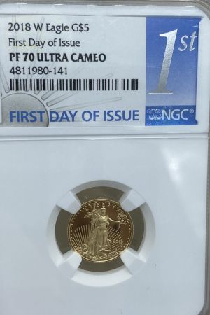 2018-W $5 Dollar American Eagle 1st Day of Issue Graded PF70 Ultra Cameo 2018-W $5 Dollar American Eagle 1st Day of Issue Graded PF70 Ultra Cameo