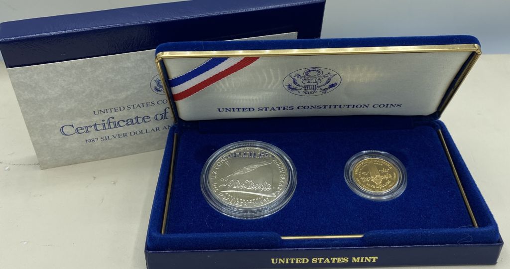 549 Untied States Constitutional 1987-W $5 Gold Coin, and 1987-S $1 Silver Proof Coin Set