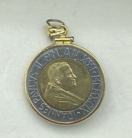 551 14k Bezel 500 Lire Pope John Paul Coin Pendant