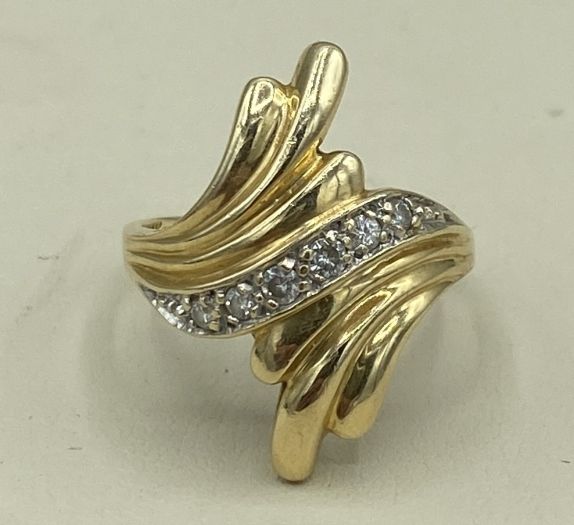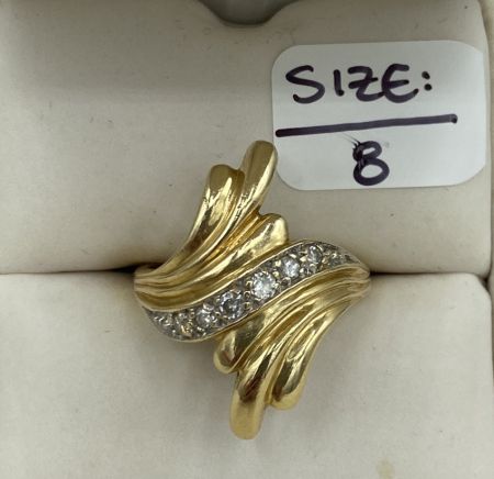 14k Gold Diamond Center Bypass Wave Ring; Stamped; SZ: 8 14k Gold Diamond Center Bypass Wave Ring; Stamped; SZ: 8