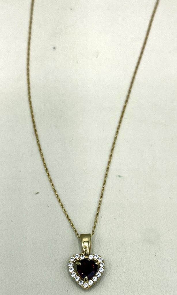 10k Gold Garnet Heart + CZ (Cubic Zirconia) 18" (length) Necklace 10k Gold Garnet Heart + CZ (Cubic Zirconia) 18" (length) Necklace