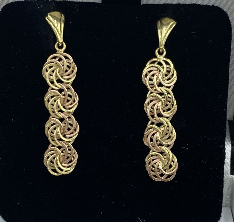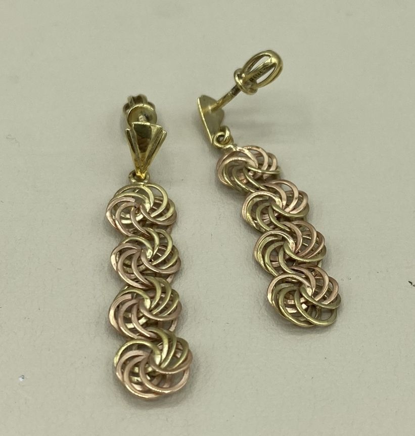 14k Gold Interlocking Circle Drop Earrings; Vintage Screw Backs; Stamped; 1.5" (length). 14k Gold Interlocking Circle Drop Earrings; Vintage Screw Backs; Stamped; 1.5" (length).
