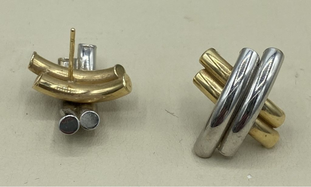 570 14k Dual Gold Double Elbow Stud Earrings
