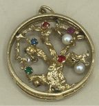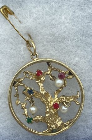 576 Mid Century 14k Gold Tree of Life Charm + Gems