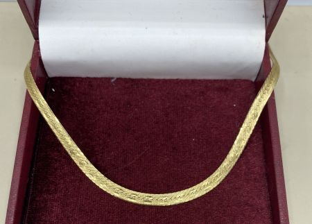 579 14k Solid Gold Diamond Etched 22" Herringbone Link Necklace