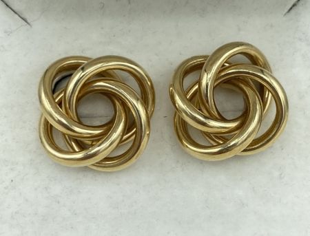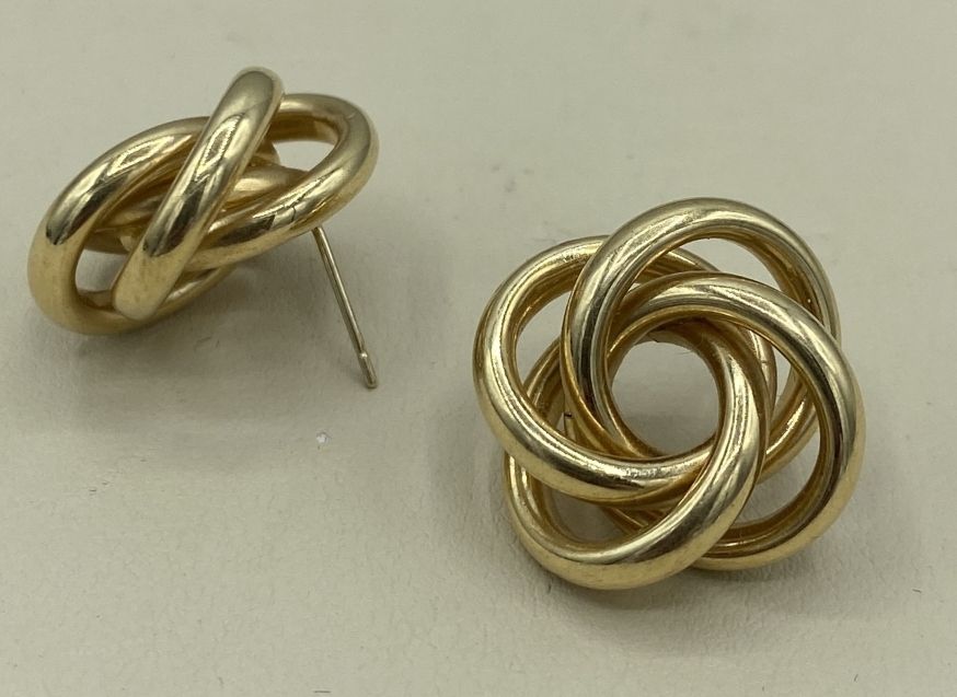 14k (Hollow) Gold Knot Stud Statement Earrings; Push Backs; Stamped; 1x has bent post/Easily repairable. 14k (Hollow) Gold Knot Stud Statement Earrings; Push Backs; Stamped; 1x has bent post/Easily repairable.