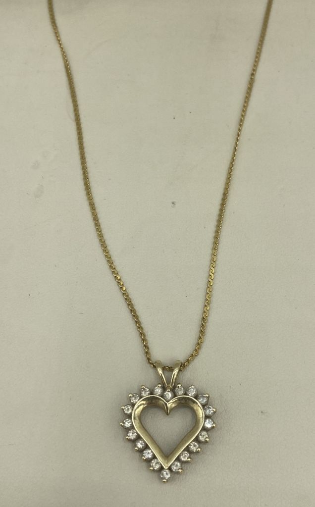 14k Gold Diamond Heart 18" (length chain) Necklace; Genuine/Tested Diamond; Stamped; Needs Cleaning; Total Necklace. 14k Gold Diamond Heart 18" (length chain) Necklace; Genuine/Tested Diamond; Stamped; Needs Cleaning; Total Necklace.