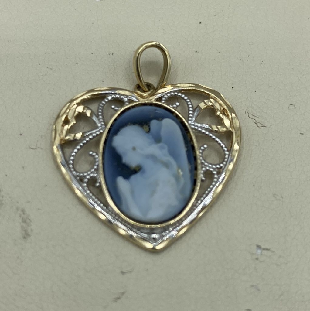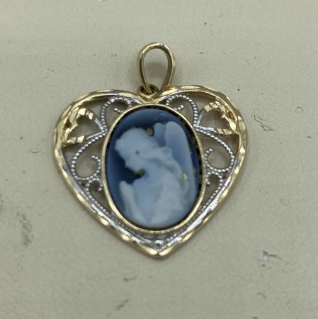 593 14k Dual Gold Angel Cameo Heart Pendant