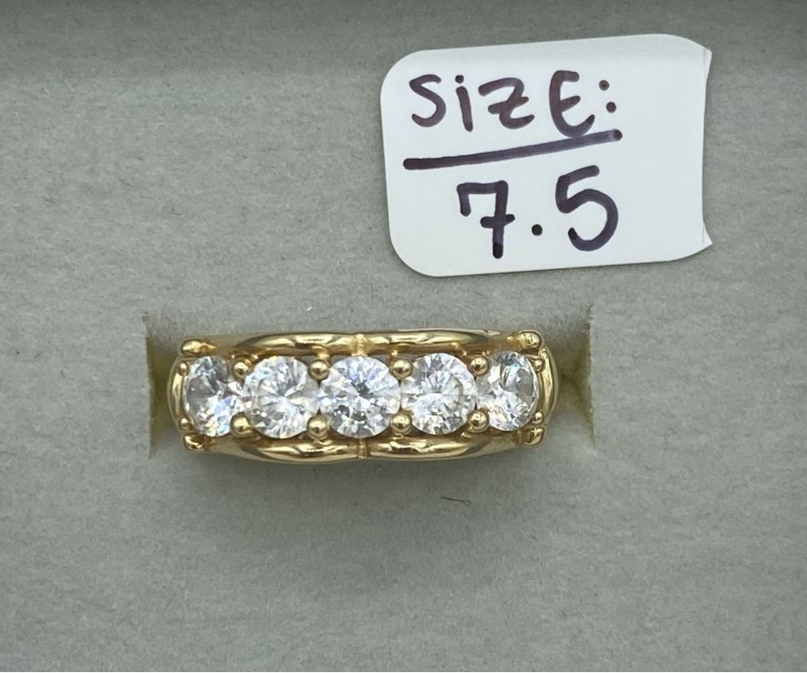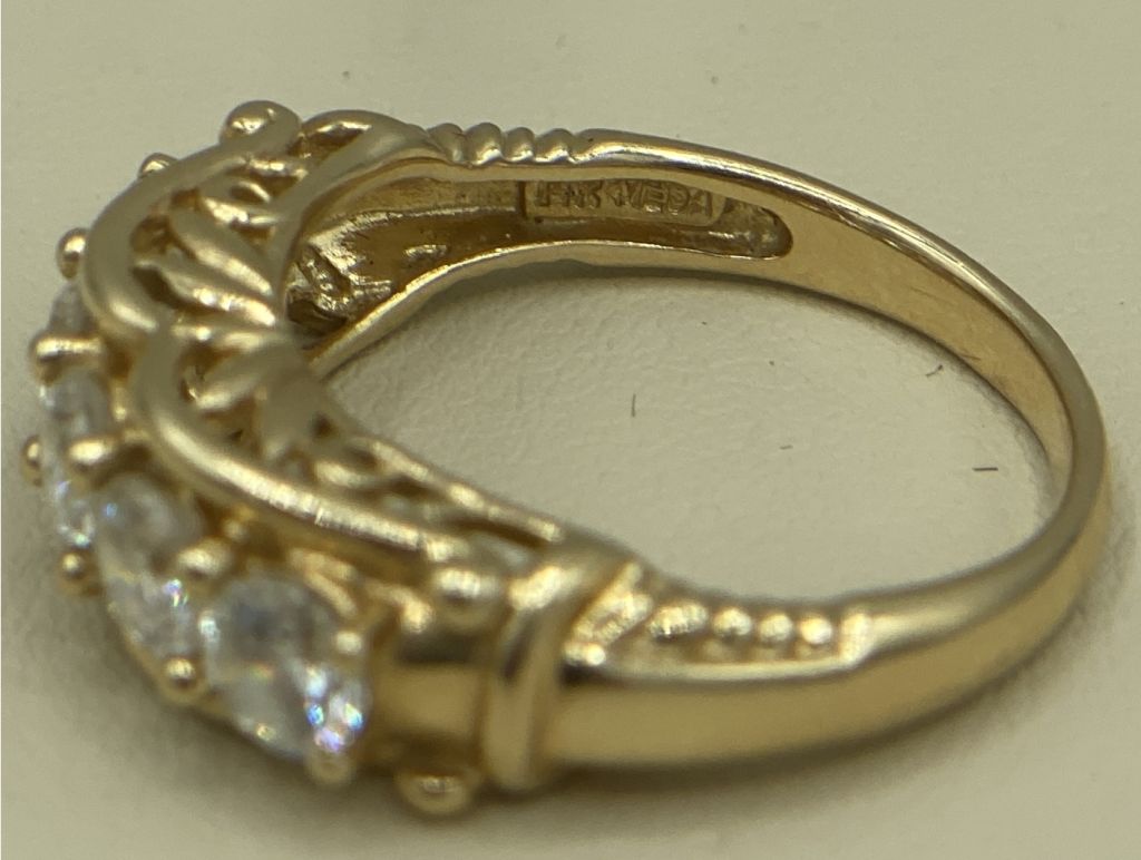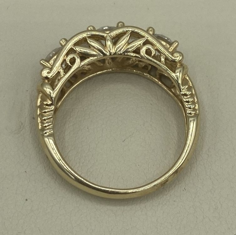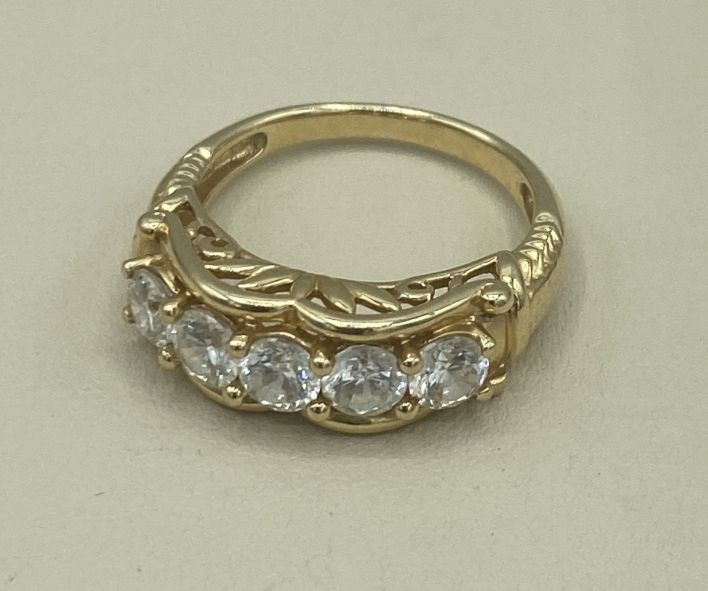 14k Gold Ornate Cubic Zirconia (CZ) Ladies Ring Band; SZ: 7.5; Stamped. 14k Gold Ornate Cubic Zirconia (CZ) Ladies Ring Band; SZ: 7.5; Stamped.