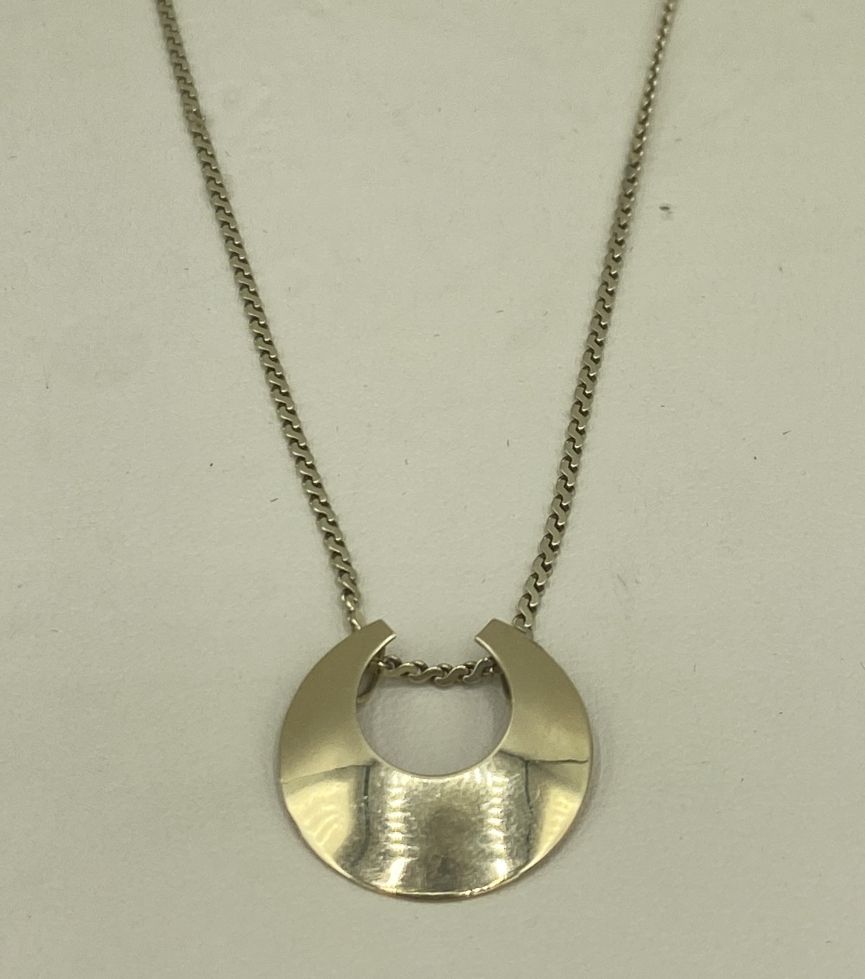 14k Gold Cresent Slide 18" (length chain) Geometric Necklace; Serpentine Link Chain; Stamped. 14k Gold Cresent Slide 18" (length chain) Geometric Necklace; Serpentine Link Chain; Stamped.