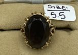 611 Vintage Mid Century 10k Gold Smoky Topaz Glass Cocktail Ring