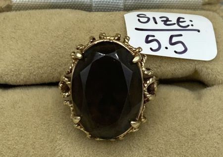 Vintage Mid Century (c.1940s-50s) 10k Gold Smoky Topaz Glass Cocktail Ring; SZ: 5.5; Stamped. (With Stone) Vintage Mid Century (c.1940s-50s) 10k Gold Smoky Topaz Glass Cocktail Ring; SZ: 5.5; Stamped. (With Stone)