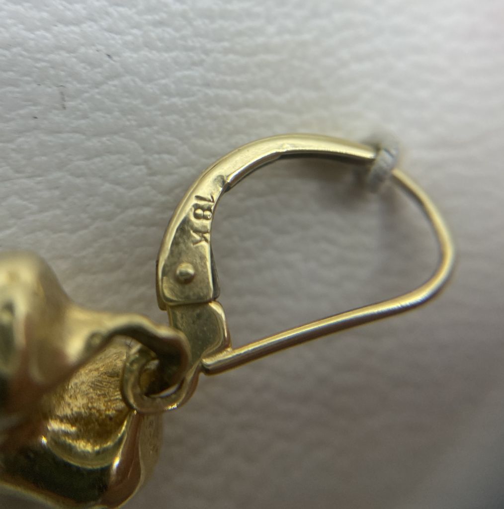 Ladies Solid 18k Gold Puff Heart Drop Earrings; Hallmarked, Stamped, and Tested; Latching Backs. Ladies Solid 18k Gold Puff Heart Drop Earrings; Hallmarked, Stamped, and Tested; Latching Backs.