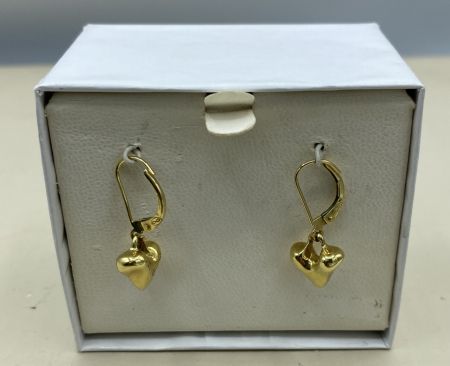 612 Ladies Solid 18k Gold Puff Heart Drop Earrings