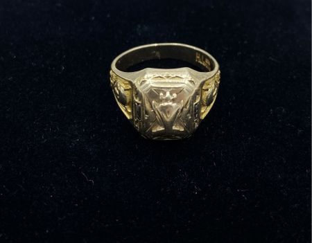 623 Unisex Vintage c.1938 Solid 10k Gold Class Ring + Devil Mascot & Trophy SZ: 6