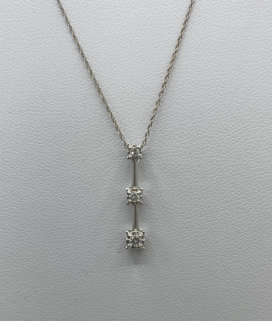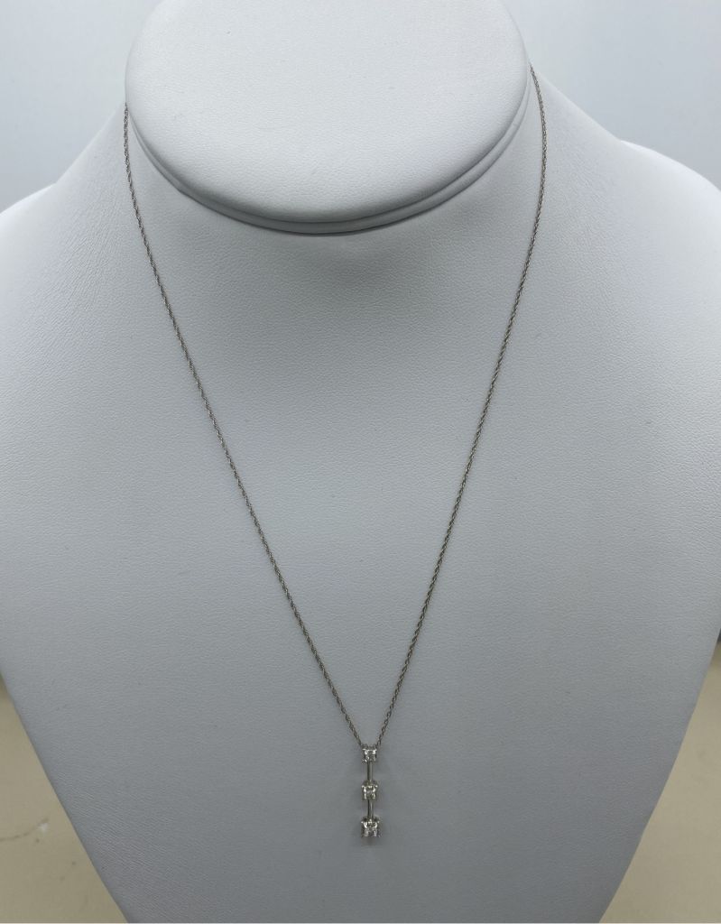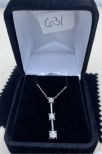 631 Ladies 10k White Gold Gradient Diamond Bar 18" Drop Necklace
