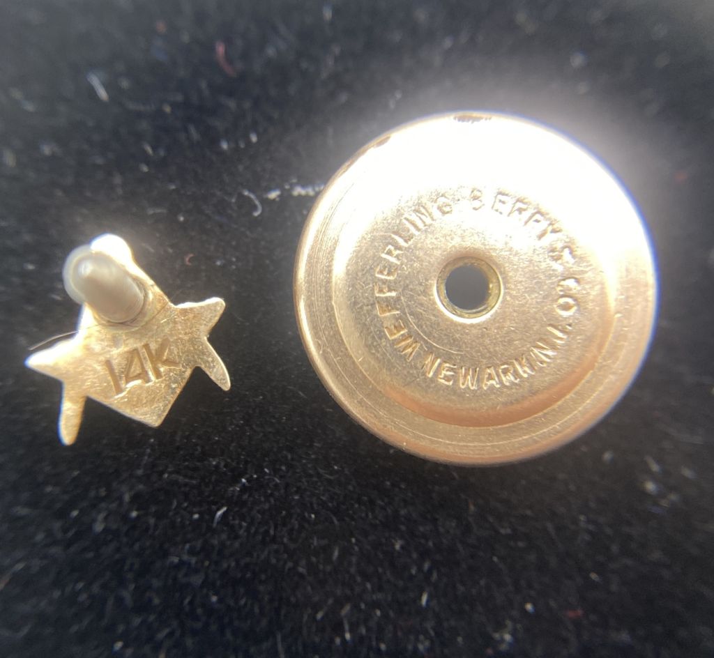 14k Gold Super Tiny "Square and Compass" Masonic Lodge Screwback Tie Tack Pin; Stamped, Tested, and Hallmarked "Wefferling, Berry & Co." Newark, N.J.; Screw post is Not Gold, but Back is Gold. 14k Gold Super Tiny "Square and Compass" Masonic Lodge Screwback Tie Tack Pin; Stamped, Tested, and Hallmarked "Wefferling, Berry & Co." Newark, N.J.; Screw post is Not Gold, but Back is Gold.