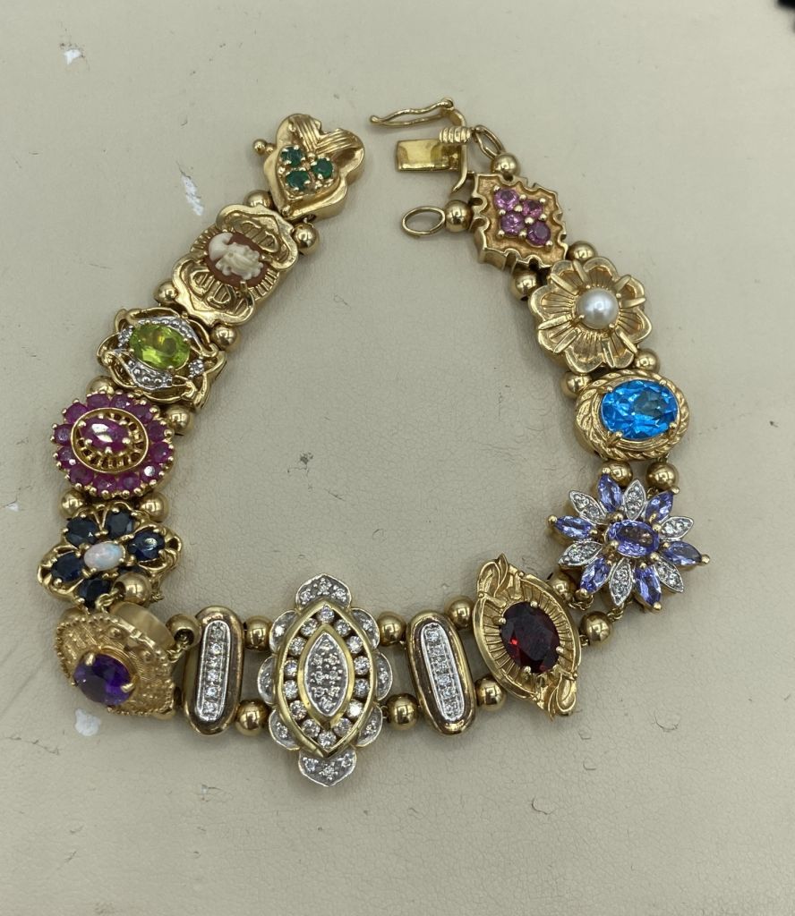 Ladies Impressive Solid 14k Genuine (Tested) Diamond + Natural Gemstone Fully Completed 8" (Length) Slide Bracelet; 11x Slides, 2x Spacers, 28x Bead Spacers; Diamond, Emerald, Cameo, Peridot. Ruby, Opal, Sapphire, Amethyst, Garnet, Tanzanite, Blue Topaz, Pearl, Pink Sapphire or Pink Tourmaline; All Stamped, Tested, and Hallmarked. Ladies Impressive Solid 14k Genuine (Tested) Diamond + Natural Gemstone Fully Completed 8" (Length) Slide Bracelet; 11x Slides, 2x Spacers, 28x Bead Spacers; Diamond, Emerald, Cameo, Peridot. Ruby, Opal, Sapphire, Amethyst, Garnet, Tanzanite, Blue Topaz, Pearl, Pink Sapphire or Pink Tourmaline; All Stamped, Tested, and Hallmarked.