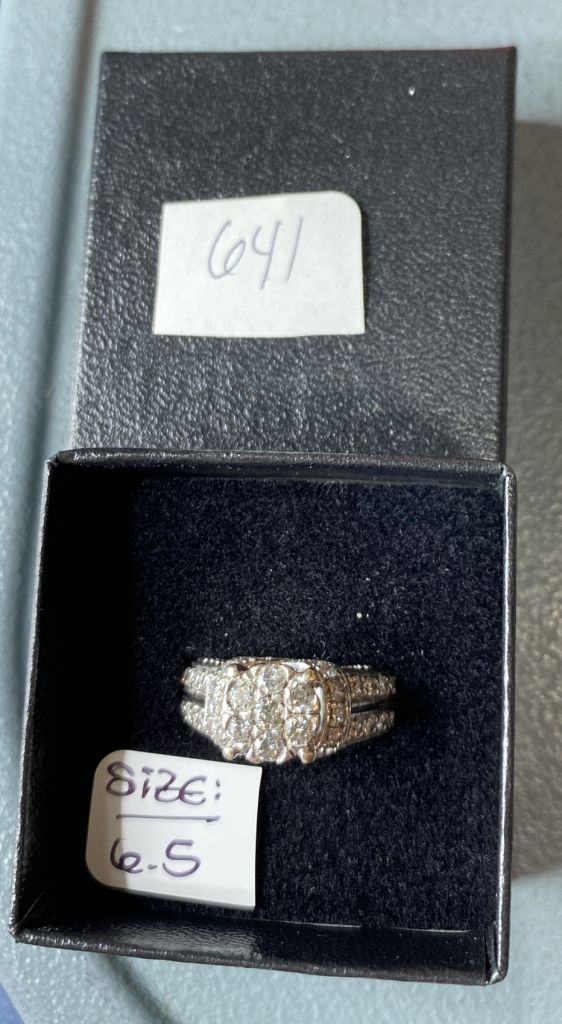 641 Ladies 14k White Gold Genuine Diamond .70ctw Center Solitaire Cluster Ring SZ: 6.5