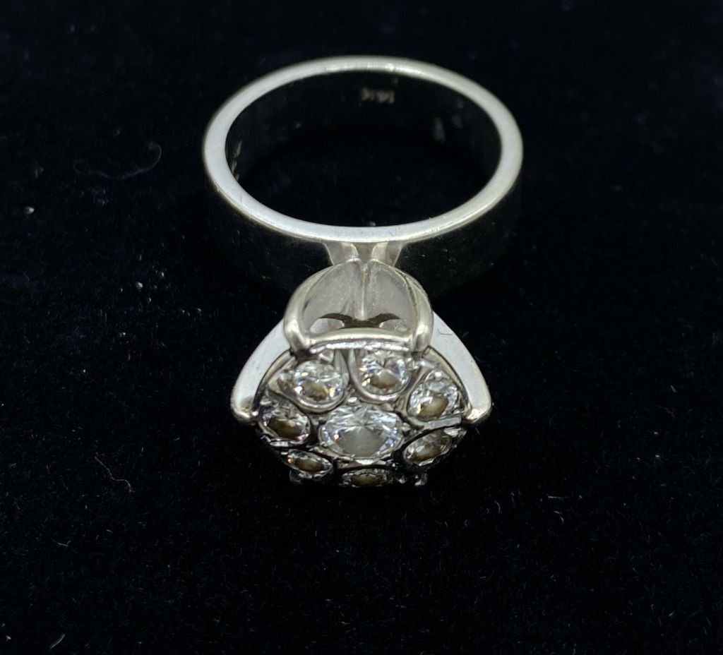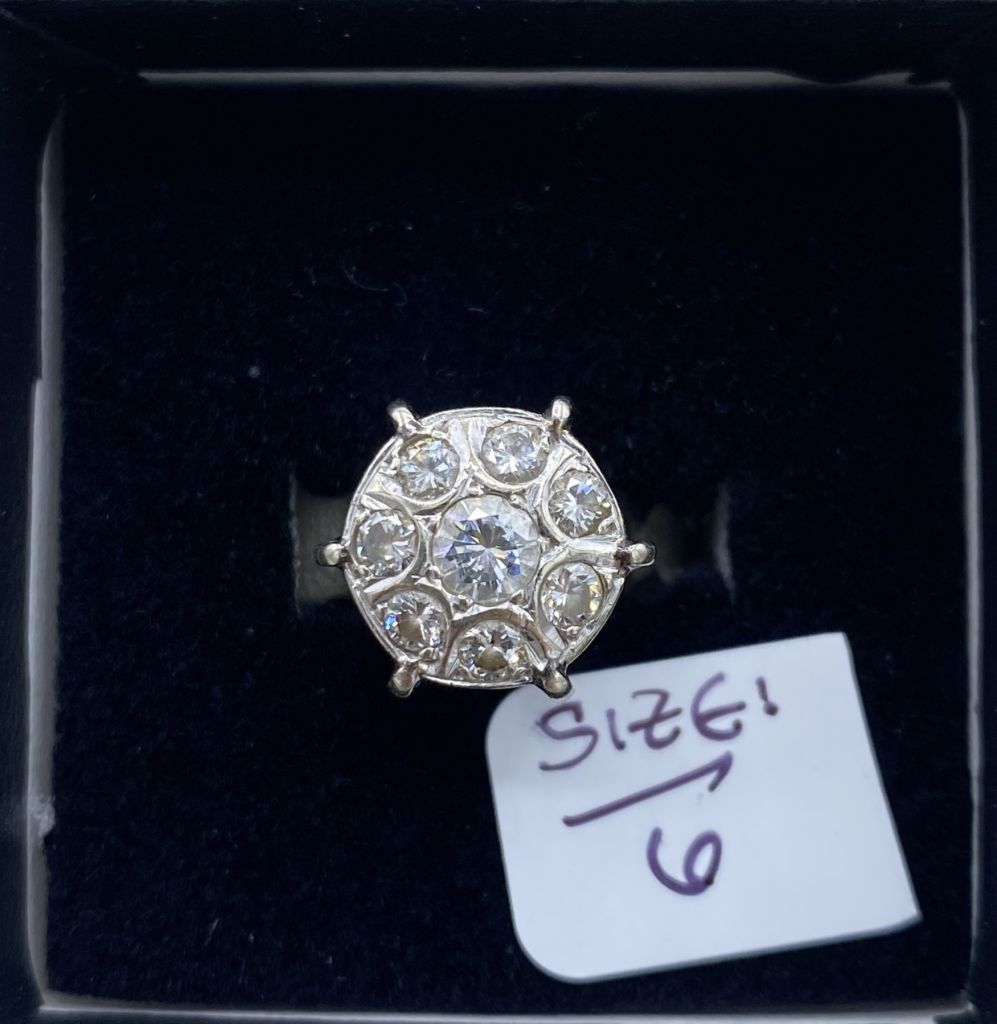 648 Ladies 14k White Gold High Set .98ctw Genuine Diamond Flower Cluster Ring SZ: 6