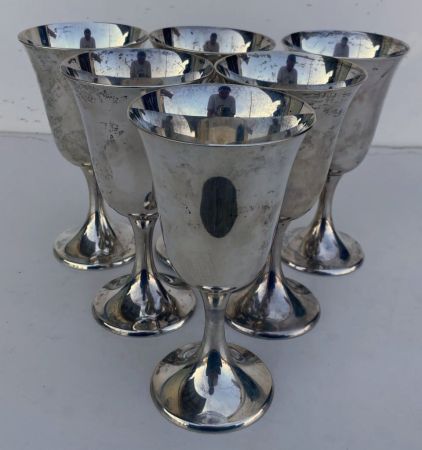 Set of 6 Unmonogrammed "Gorham" No. 272 Sterling (925) Silver Chalices; Stamped and Hallmarked; Some wear and patina may be present; 1108.8g 0.75” diameter of bottom 6.5” from top to bottom Set of 6 Unmonogrammed "Gorham" No. 272 Sterling (925) Silver Chalices; Stamped and Hallmarked; Some wear and patina may be present; 1108.8g 0.75” diameter of bottom 6.5” from top to bottom