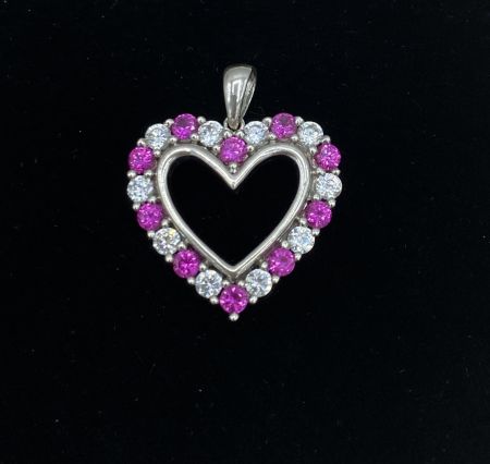 Sterling Silver (925) Cubic Zirconia (CZ) Heart Pendant; Pink Synthetic Ruby color with clear; Stamped; Sterling Silver (925) Cubic Zirconia (CZ) Heart Pendant; Pink Synthetic Ruby color with clear; Stamped;