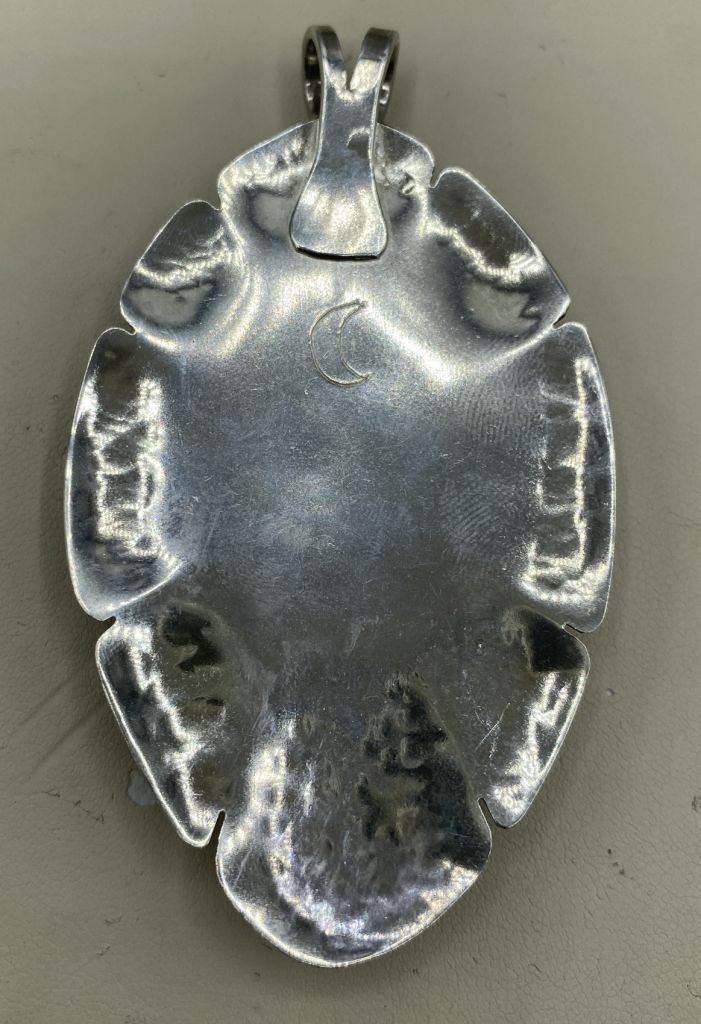 Large Hand Made Sterling Silver (925) + Black Onyx Shield Pendant; Unstamped; Tested 925 on Sigma Metalytics; Etched moon hallmark; Large Hand Made Sterling Silver (925) + Black Onyx Shield Pendant; Unstamped; Tested 925 on Sigma Metalytics; Etched moon hallmark;