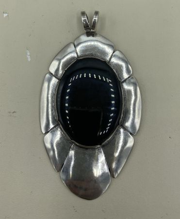 741 Large Hand Made Sterling Silver + Black Onyx Shield Pendant
