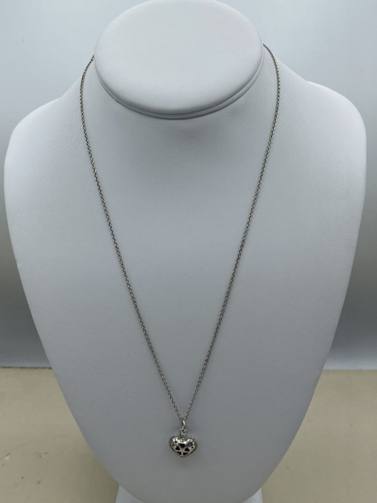 750 Ladies Sterling Silver Captivated CZ Heart + Love Quote 20"L Necklace