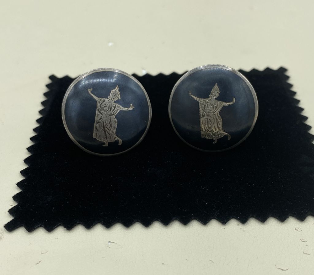 777 Men's Vintage c.1940s Sterling Silver Siam "Nielloware" Figural Cuff Links