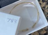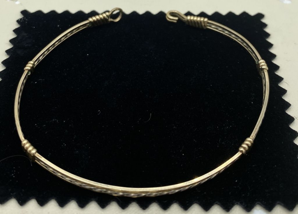 Ladies Designer "Ronaldo" Sterling Silver (925) + (Designer's Custom) Gold Blend Dainty Narrow (6"L) Bangle Bracelet; No Stamps/Hallmarks; Ladies Designer "Ronaldo" Sterling Silver (925) + (Designer's Custom) Gold Blend Dainty Narrow (6"L) Bangle Bracelet; No Stamps/Hallmarks;