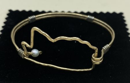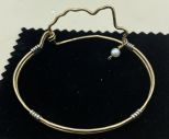 Ladies Designer "Ronaldo" Sterling (925) Silver + (Designer's Custom) Gold Blend "Mississippi" (6"L) Bangle Bracelet w Pearl Accent; No Stamps/Hallmarks; Ladies Designer "Ronaldo" Sterling (925) Silver + (Designer's Custom) Gold Blend "Mississippi" (6"L) Bangle Bracelet w Pearl Accent; No Stamps/Hallmarks;