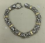 Turkish Sterling (925) Silver + 14k Gold Accented Byzantine Link Spring Ring 7" Bracelet; Stamped and Hallmarked; "Turkey" Marking; Clean and Great Condition; Turkish Sterling (925) Silver + 14k Gold Accented Byzantine Link Spring Ring 7" Bracelet; Stamped and Hallmarked; "Turkey" Marking; Clean and Great Condition;