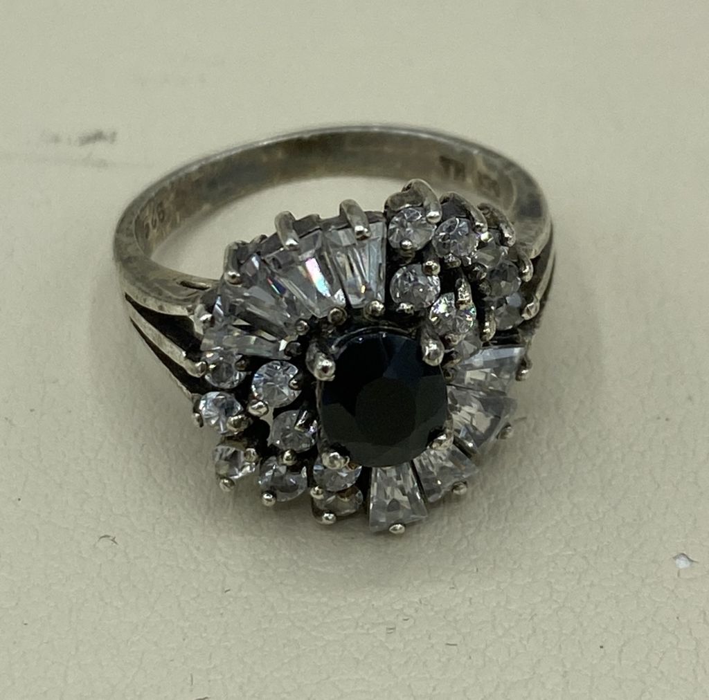 Ladies Sterling (925) Silver Natural Blue Sapphire + Cubic Zirconia (CZ) Accented; SZ: 6.25; Cannot be Resized; Stamped and Hallmarked; Untreated Blue Sapphire; Needs Cleaning; Ladies Sterling (925) Silver Natural Blue Sapphire + Cubic Zirconia (CZ) Accented; SZ: 6.25; Cannot be Resized; Stamped and Hallmarked; Untreated Blue Sapphire; Needs Cleaning;