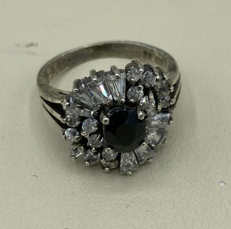 791 Ladies Sterling Silver Natural Blue Sapphire + Cubic Zirconia Accented SZ: 6.25