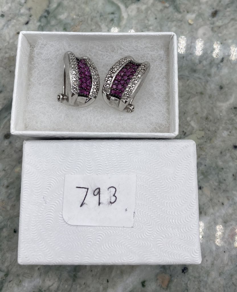 793 Ladies Sterling Silver Pave Natural Ruby + Genuine Diamond Omega Clip Lobe Hugger Hoop Earring