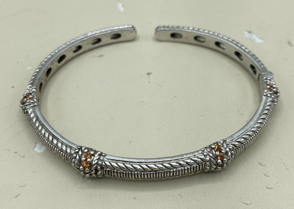 794 Ladies Designer "Judith Ripka" Sterling Silver + Genuine Orange Sapphire 6.5" Bangle Bracelet