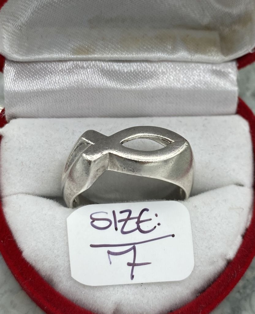 796 Ladies Solid Sterling Silver "Ichthys" Religious Symbolism Fish Ring SZ: 7