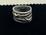 Ladies "David Yurman" Sterling (925) Silver + 14k Gold "X" (Accents) Cable Twist Cuff Ring; SZ: 5.75; Unsure if Resizable; Stamped and Hallmarked; Needs Polishing/Cleaning; Ladies "David Yurman" Sterling (925) Silver + 14k Gold "X" (Accents) Cable Twist Cuff Ring; SZ: 5.75; Unsure if Resizable; Stamped and Hallmarked; Needs Polishing/Cleaning;