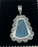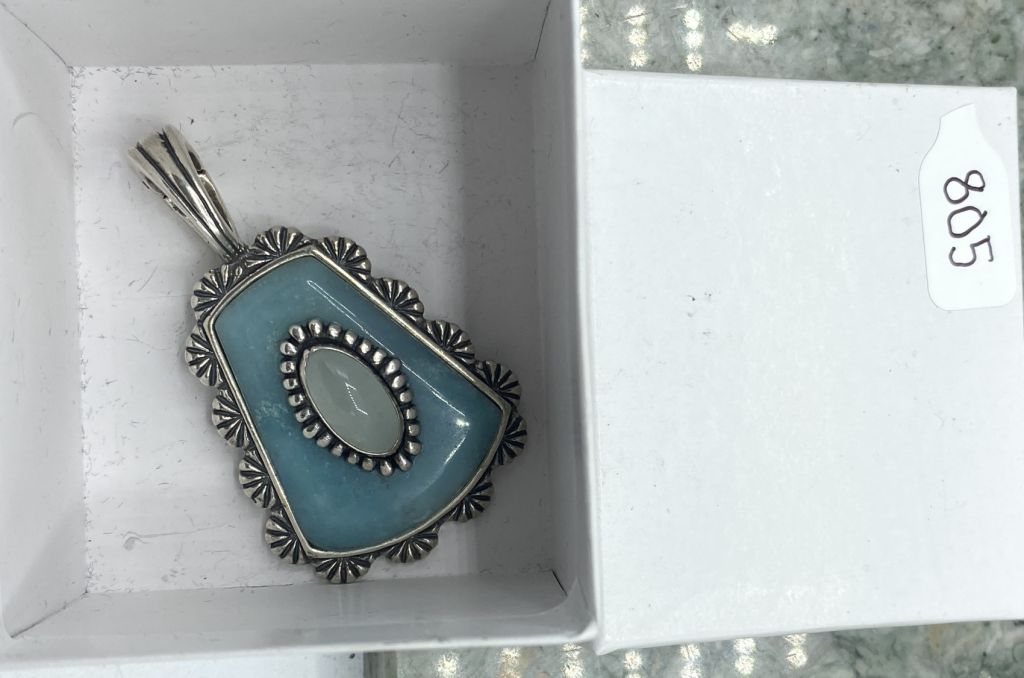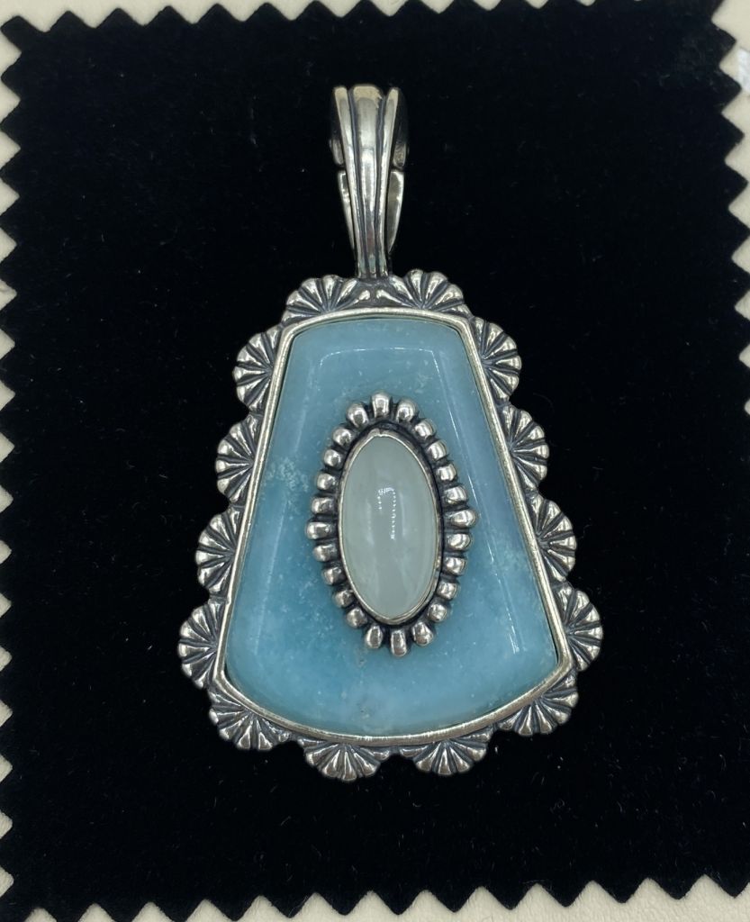 805 Ladies Large South Western Style Sterling Silver Blue Amazonite + Aquamarine Gemstone Drop Pendant